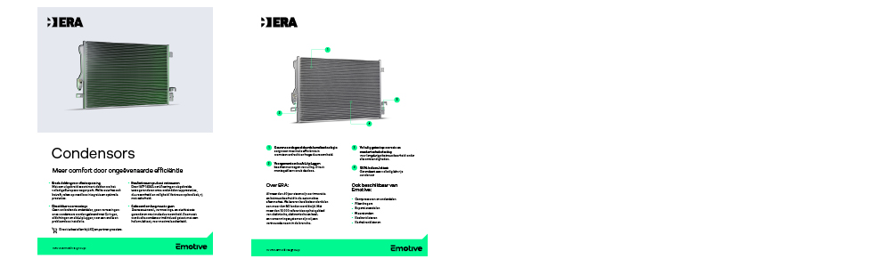 Onder de vlag van Emotive breidt ERA het assortiment voor thermomanagement verder uit met onderdelen voor het aircosysteem. Met de introductie van ERA condensors komt er een nieuwe productgroep (groep 492) van courante airco-onderdelen beschikbaar.