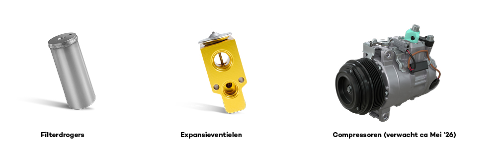Samen met condensors vormen deze onderdelen een belangrijk onderdeel van een betrouwbaar aircosysteem. Later dit seizoen wordt het assortiment verder uitgebreid met een competitief programma compressoren. Houd hiervoor onze nieuwsbrief in de gaten.
