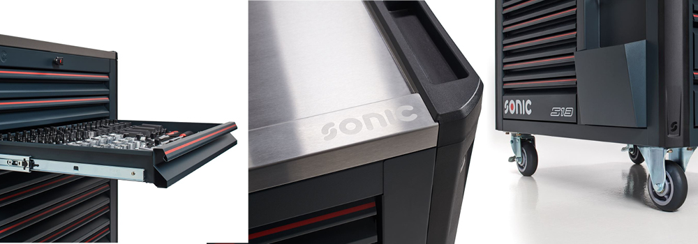 Sonic biedt al jarenlang hoogwaardige opbergsystemen en levert met de Sonic NEXT gereedschapswagens een uitgebreid assortiment dat aansluit op de behoeften van zowel de beginnende monteur als de doorgewinterde professional. Met deze modellen combineert Sonic innovatieve ontwerpen met praktische functionaliteit en vooral efficiëntie, van de compacte NEXT S7 tot de meer dan complete S15.