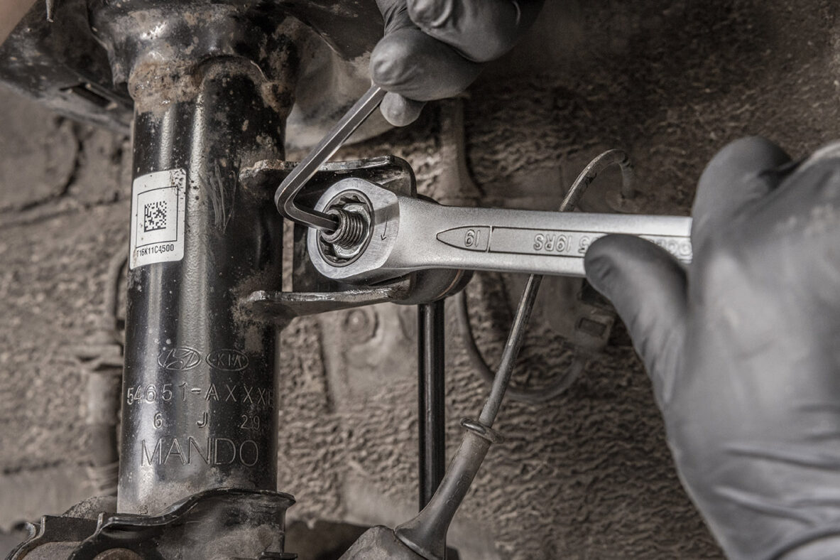- Span hem aan met een steeksleutel en trek daarna op koppel volgens de richtlijnen van de voertuigfabrikant.